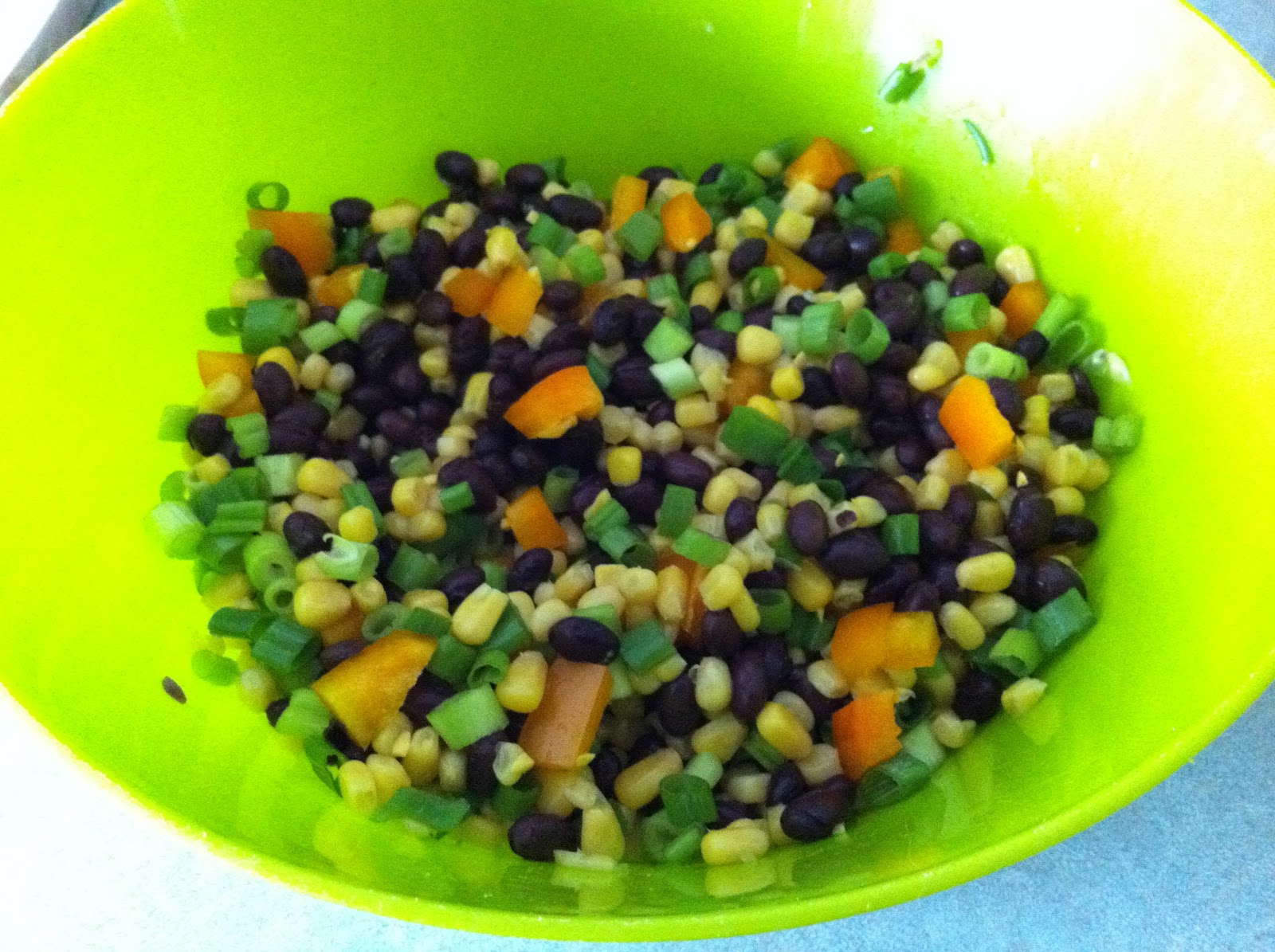 - open the can of corn and can of beans, rinse and mix together in large bowl